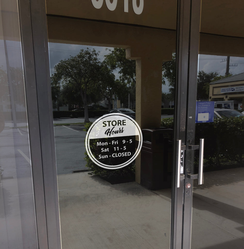 Open or closed? Advertise store hours with custom window stickers for your business.